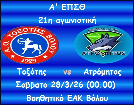 Καλώς ήρθατε στον Ιστότοπο του Τοξότη Βόλου... 96 χρόνια ιστορίας στο Μαγνησιώτικο και Ελληνικό ποδόσφαιρο και συνεχίζουμε...